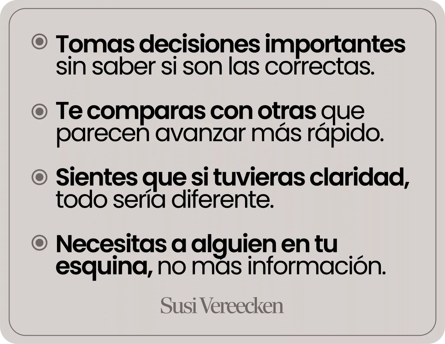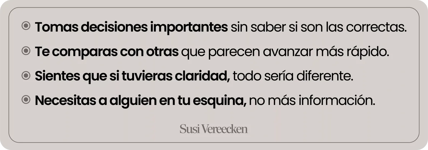 Susi no te va a dar un plan genérico. Te va a dar el empujón exacto que necesitas, cuando lo necesitas, con la claridad que solo viene de quien ha construido lo que tú quieres construir.